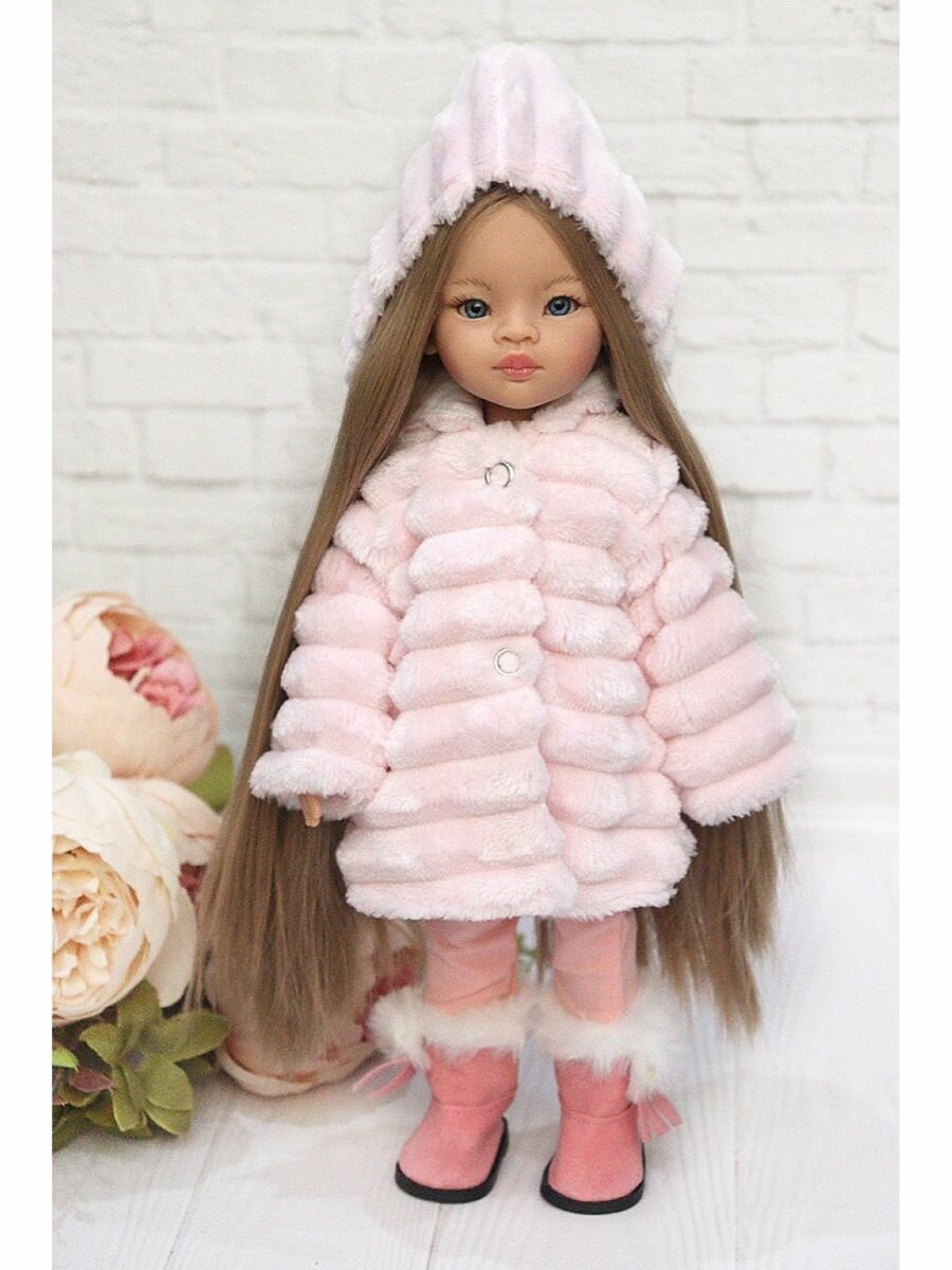 СохранитьКомплект одежды и обуви для кукол Paola Reina 32, (шуба полоска, костюм, сапожки) розовый, светло-розовый интересное:
