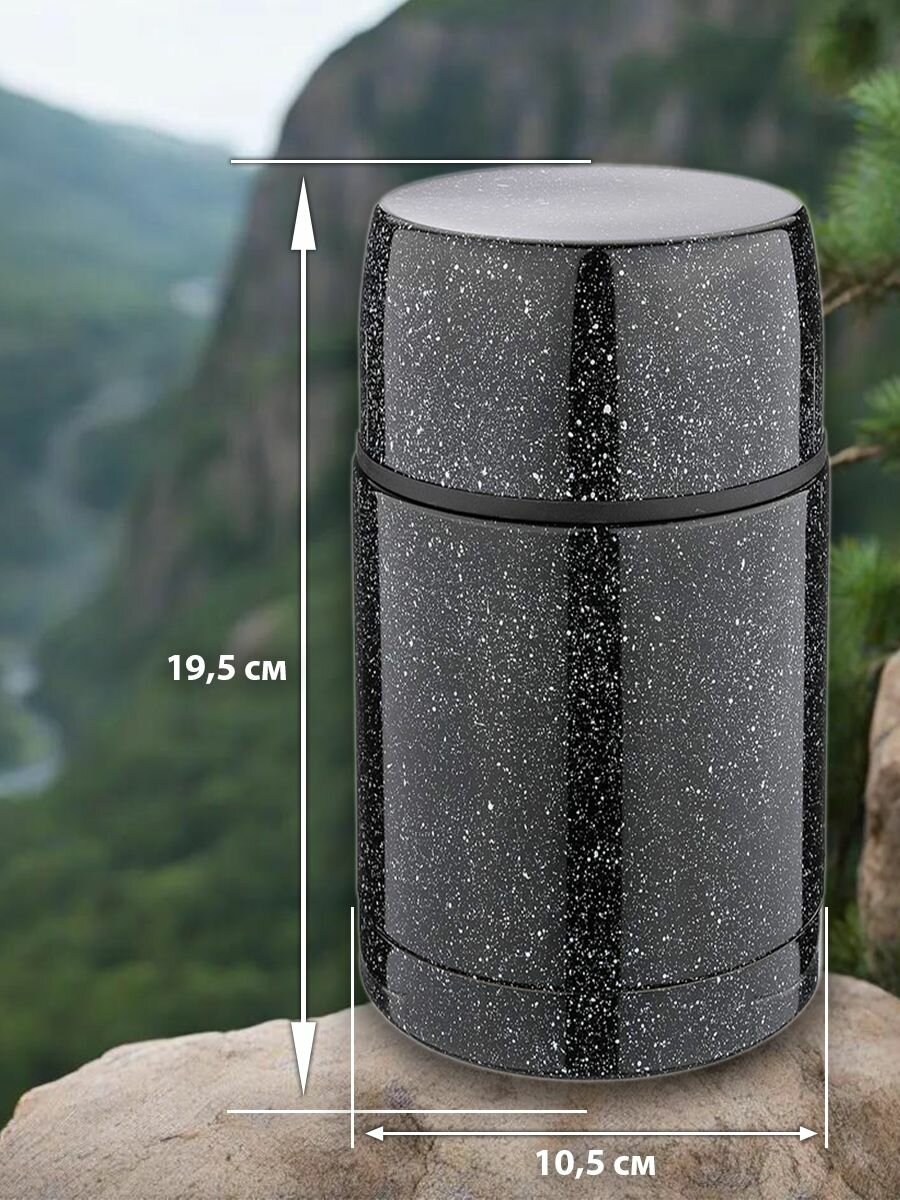 термос с широким горлом и крышкой-чашкой, 1000мл, колба нжс, черный