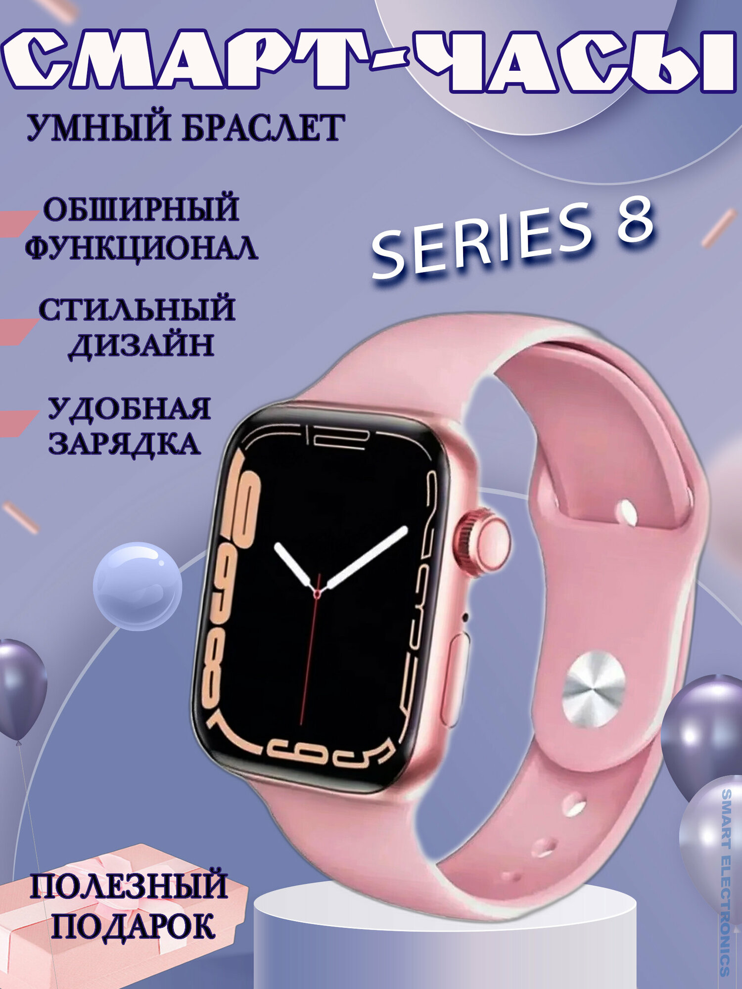Купить Смарт Часы 8 Series, Умные часы/сенсорный дисплей/GPS, Bluetooth, Android и iOS/розовый
