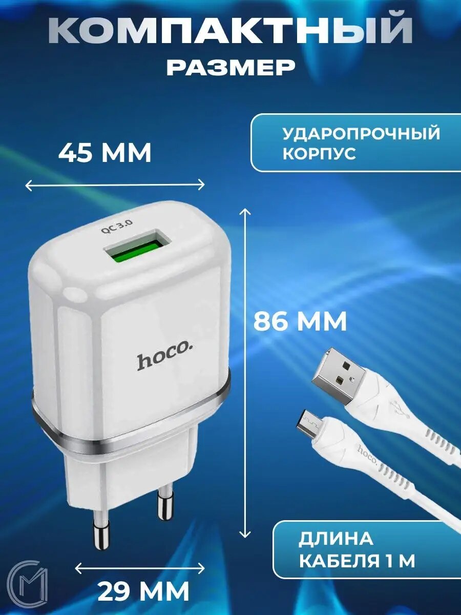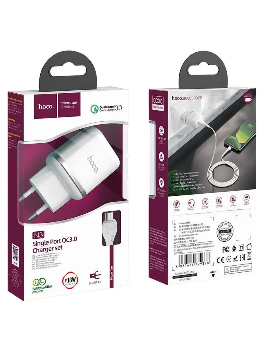 Зарядное устройство сетевое Hoco N3 QC 3.0 с кабелем micro-usb, адаптер, блок питания