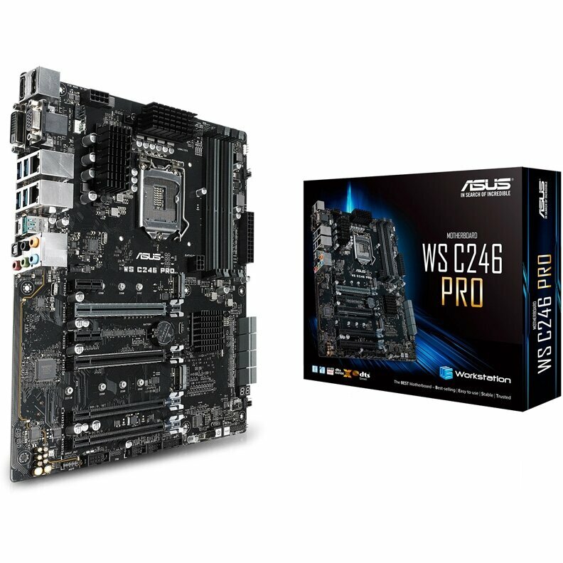 Материнская плата ATX ASUS WS C246 PRO (LGA1151,C246,4*DDR4(2666),8*SATA 6G,2*M.2,6*PCI-E,7.1CH,2*GLan,Wi-Fi,8*USB 3.1/Type-C,HDMI,DVI-D,DP,VGA)