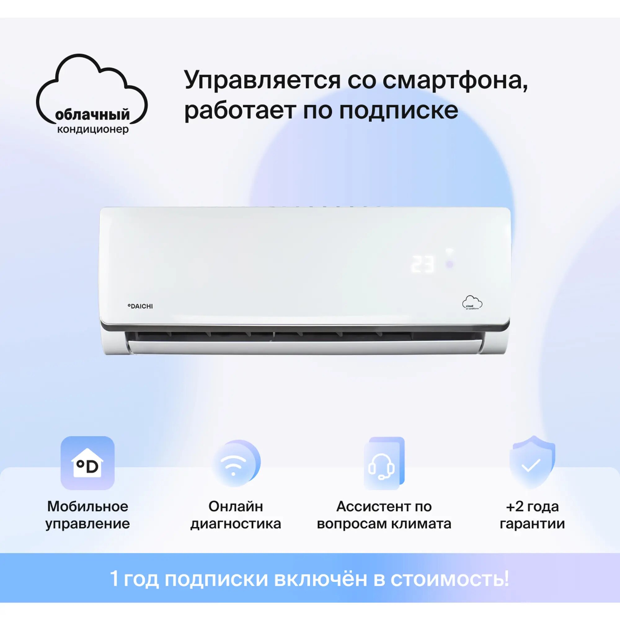 Облачный кондиционер настенная сплит-система Daichi Alpha A35AVQ2/A35FV2_1Y + 1 год подписки (Управляется со смартфона, работает по подписке)