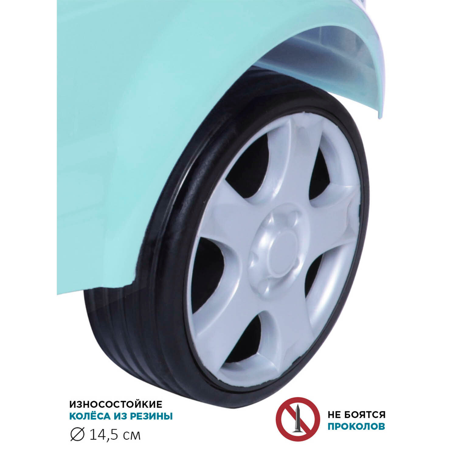 | Плюсы: | Резиновые колеса |