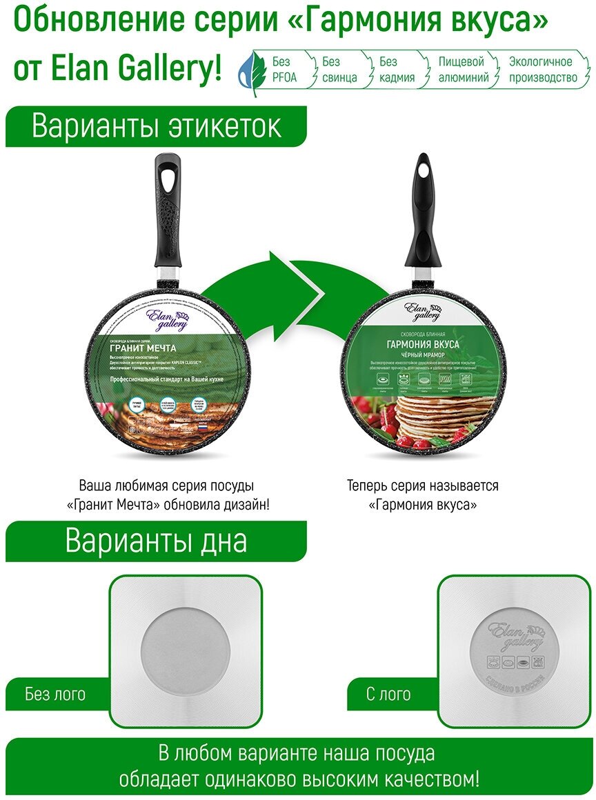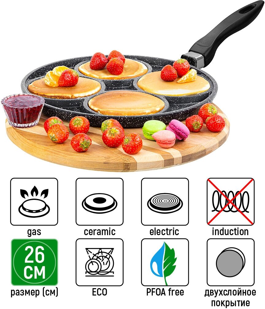 Сковорода для оладий 26 см Elan Gallery Гармония Вкуса Черный мрамор, несъёмная ручка . интересное: