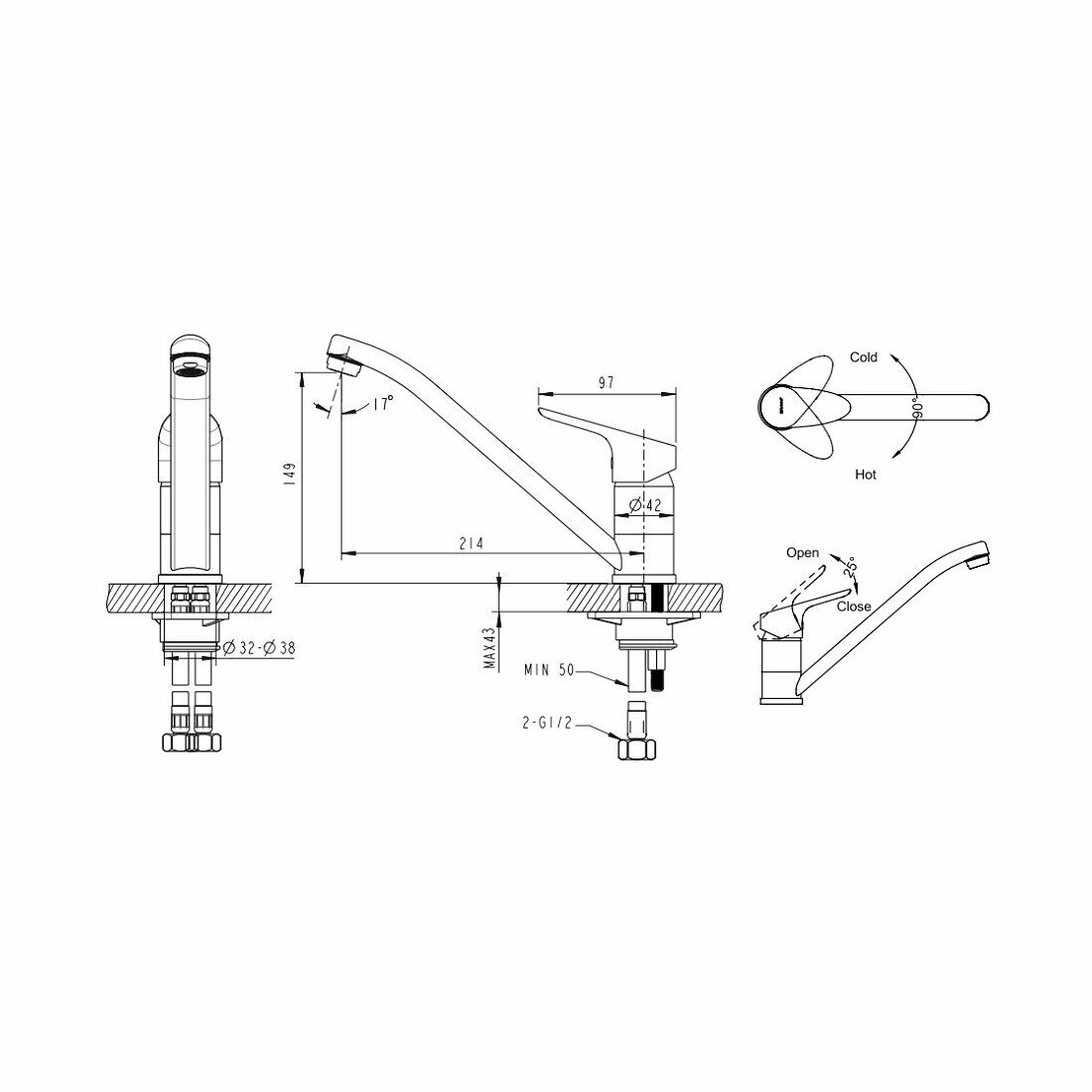 | Длина излива | 214 мм |