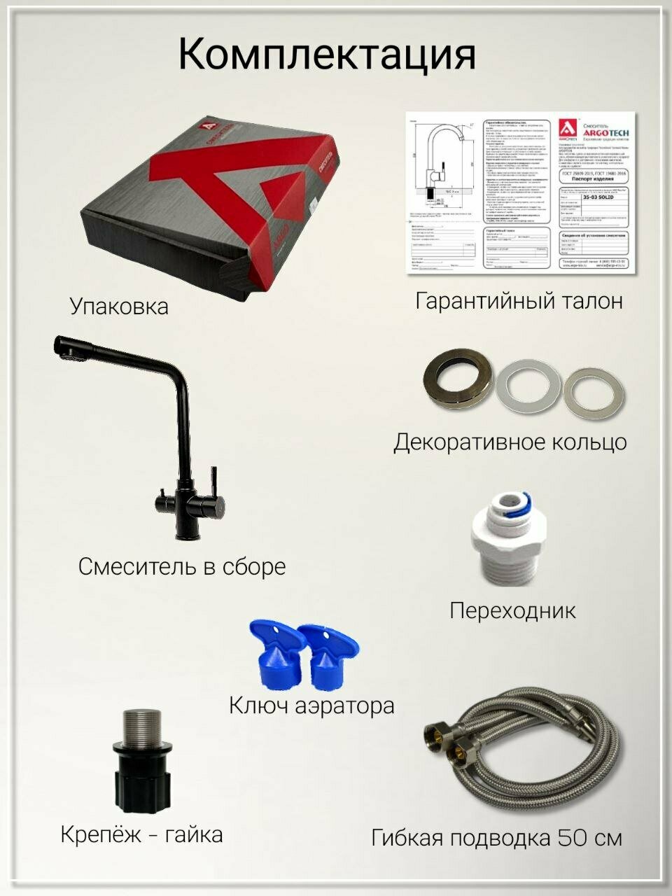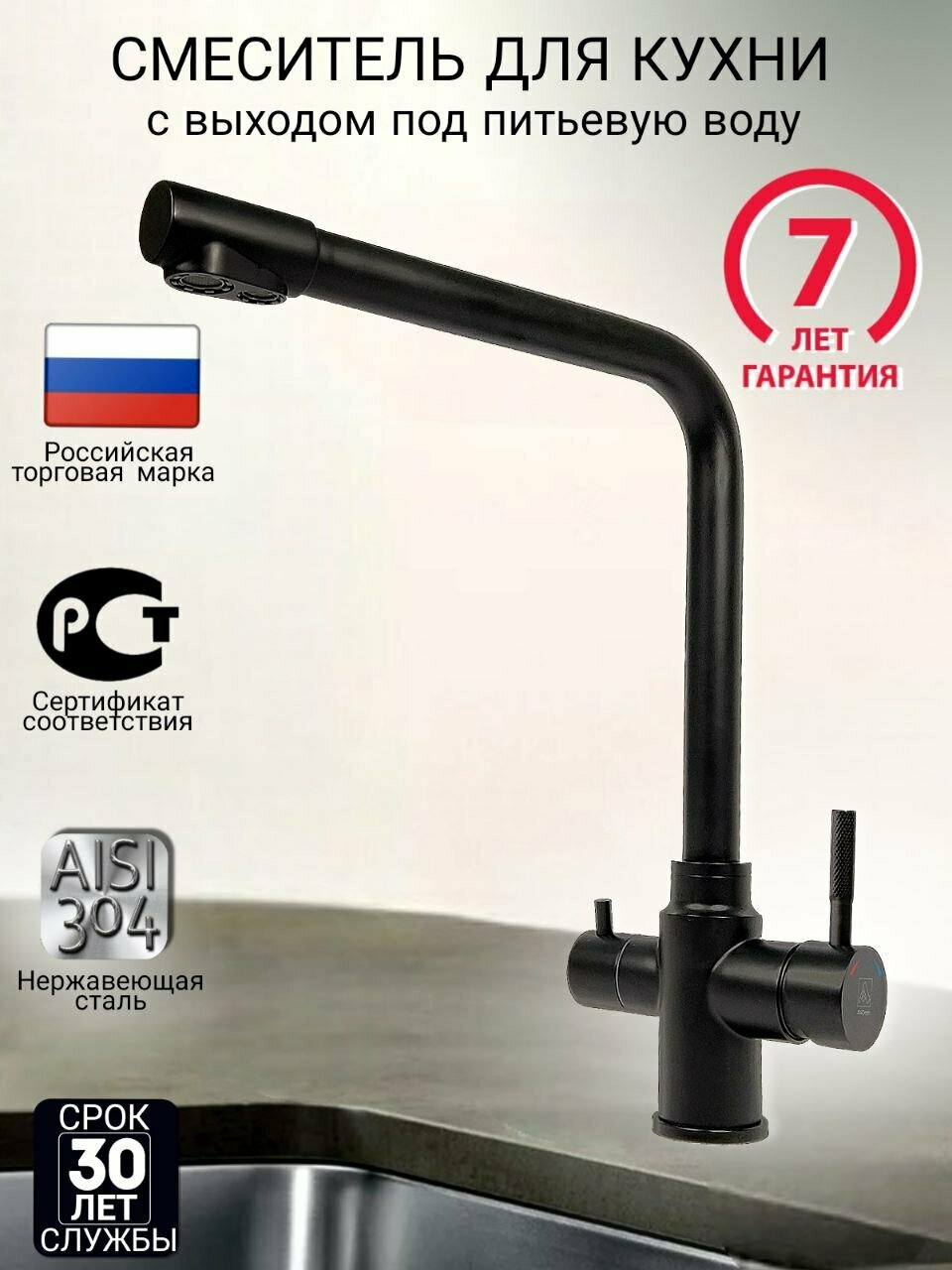 Смеситель для кухни под питьевую воду Argo SOLID чёрный, d-35, нерж. сталь,