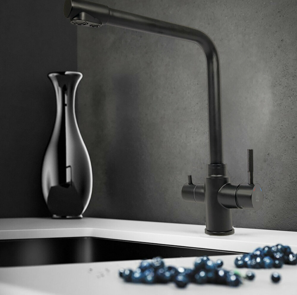 Смеситель для кухни под питьевую воду, SOLID чёрный, d-35, нерж. сталь,"ARGO"