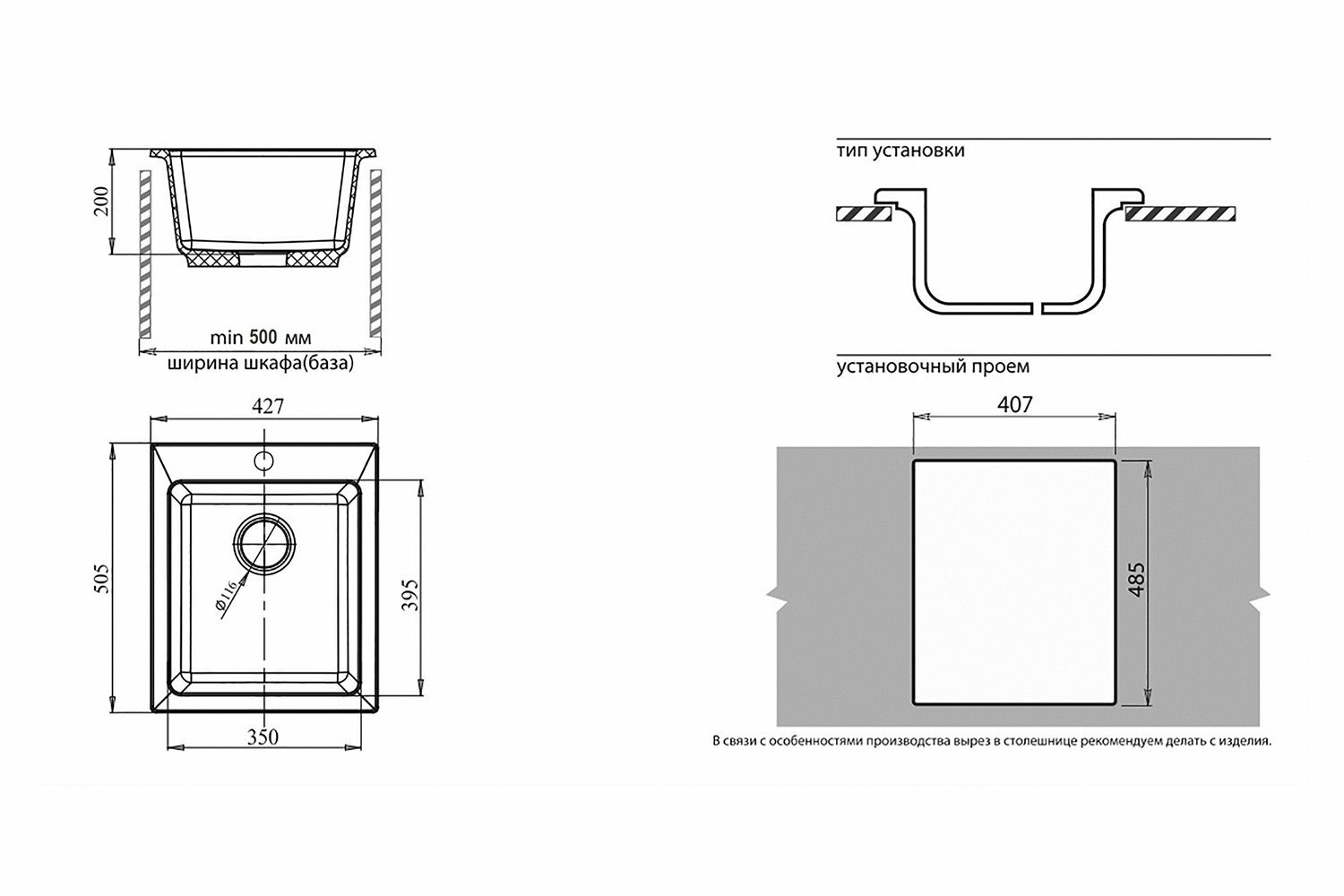 Мойка для кухни GRANFEST GF-P505 1 чаша 505x427мм (графит)