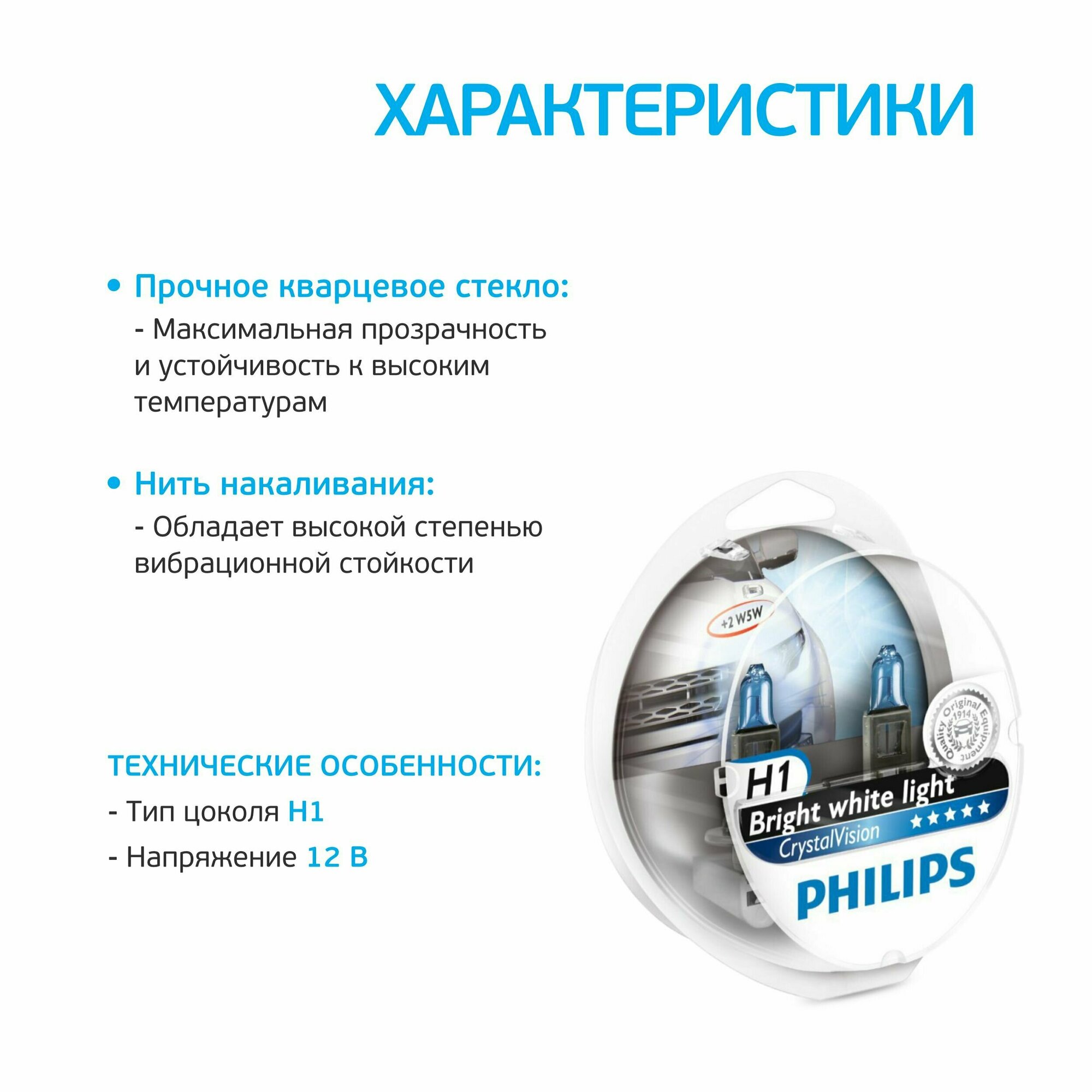 Лампы PHILIPS Crystal Vision H1 12V + 2 шт. W5W (Комплект -2 шт.) PHILIPS-12258CVSM