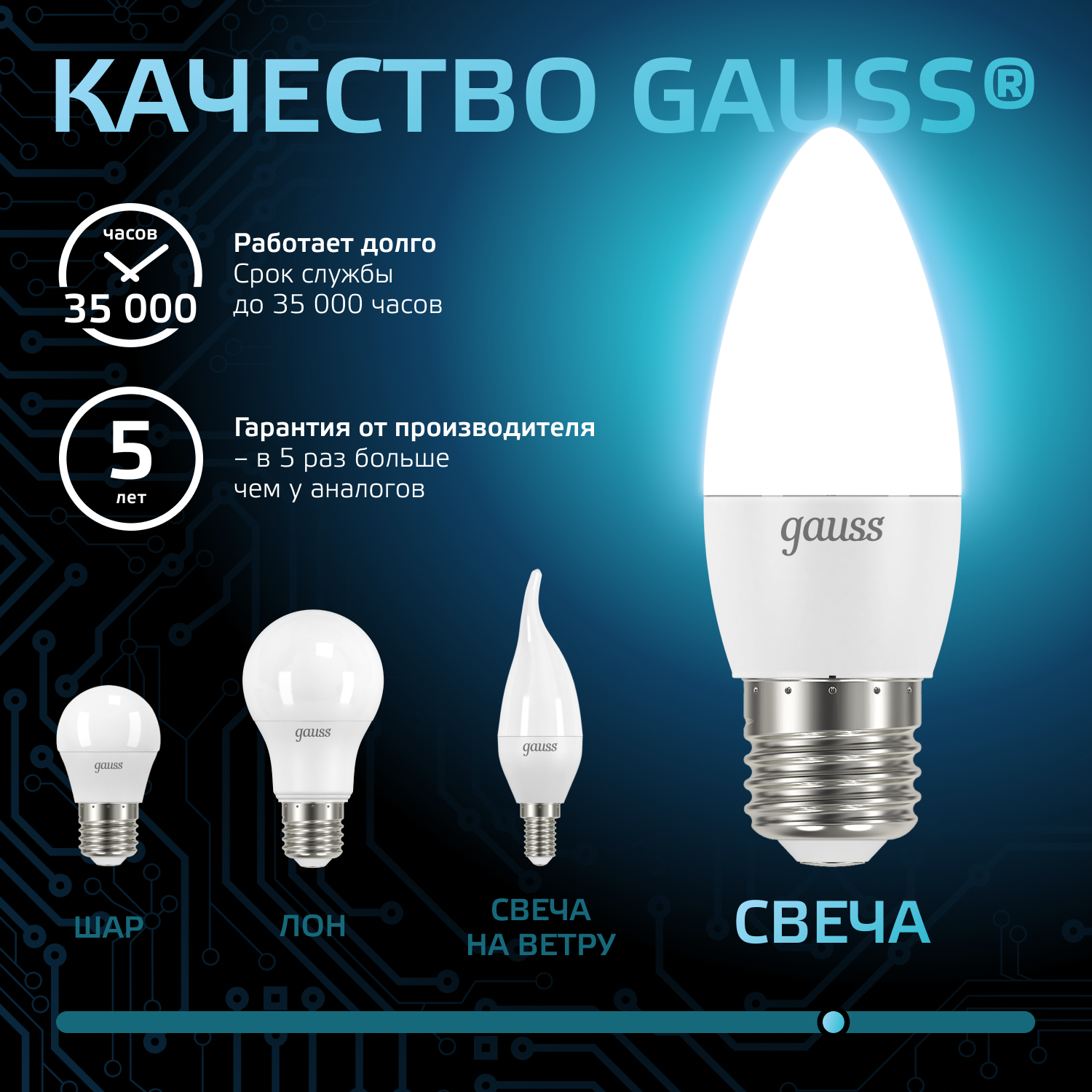 Купить Лампочка светодиодная E27 свеча 6.5W нейт-белый свет 4100К упаковка 10 шт. Gauss
