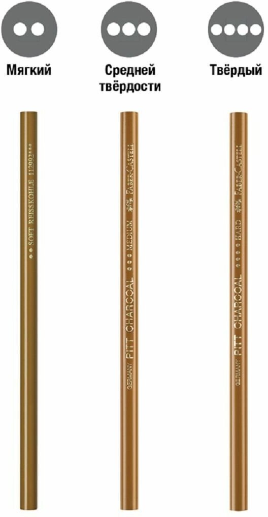 | Дополнительная информация | набор угольных карандашей разной твердости: мягкий, средний и твердый |
