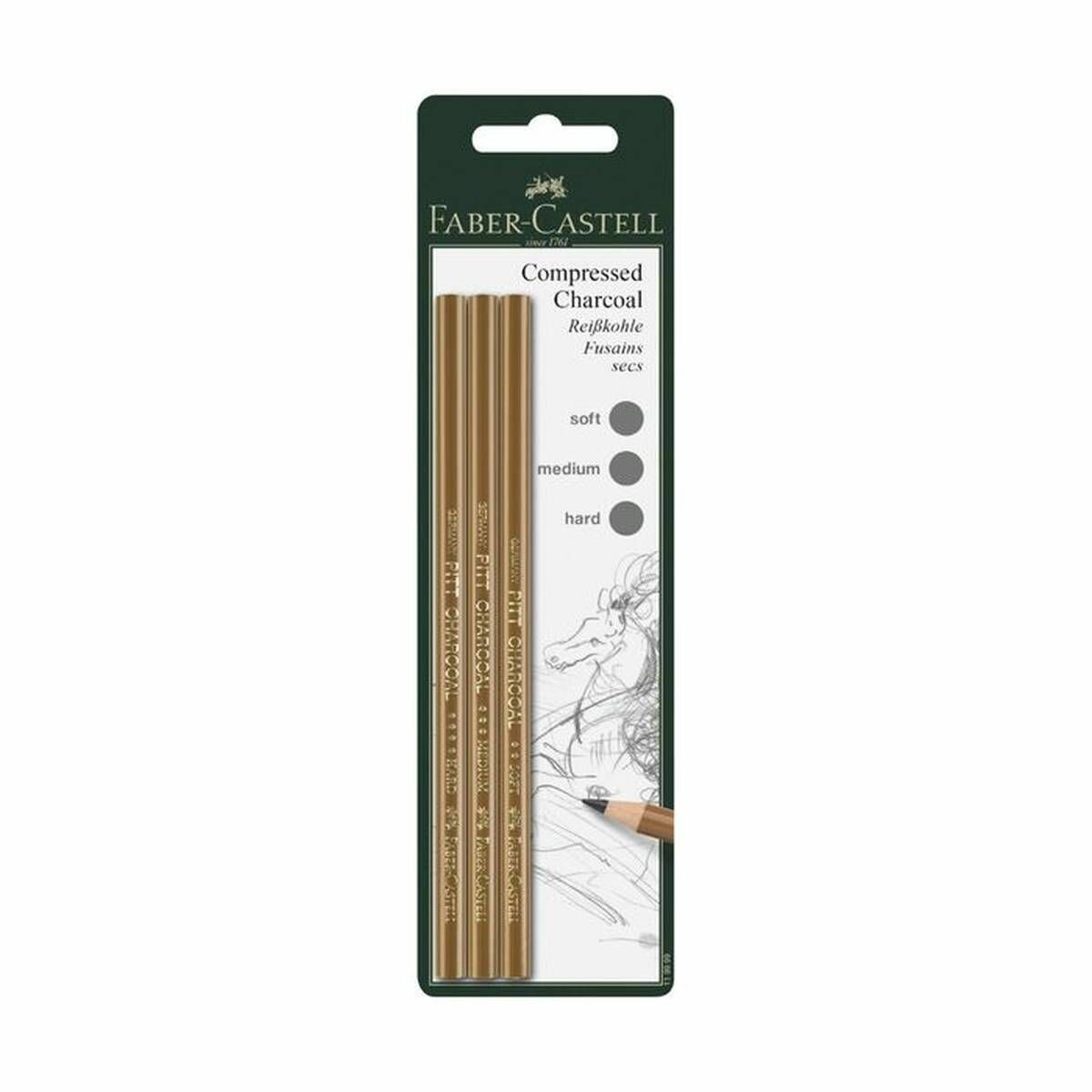 Набор угольных карандашей Faber-Castell "Pitt", 3шт., мягкий/средний/твердый, блистер