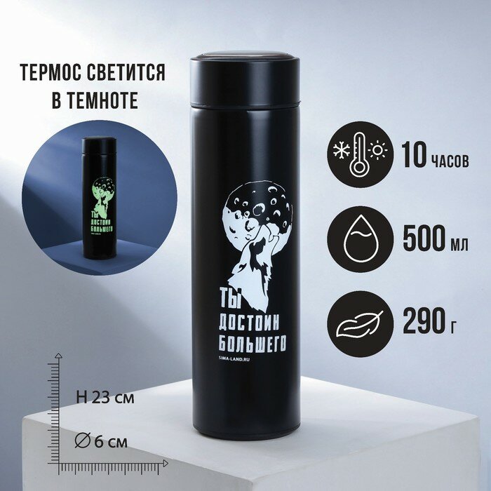 Термос «Ты достоин большего», 500 мл, светится в темноте, сохраняет тепло 6-10 ч