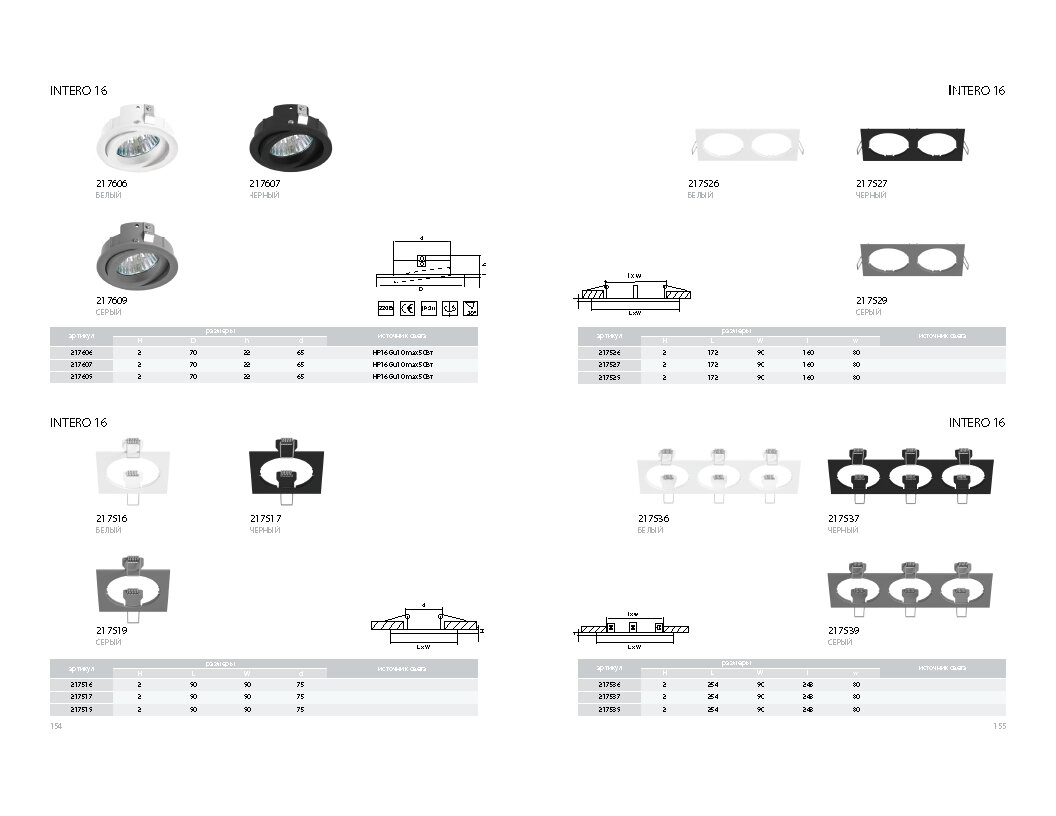 | Дополнительная информация | для установки этого светильника требуется рамка из серии Intero или приобретать комплект (светильник и рамка); типоразмер лампы: HP16 |