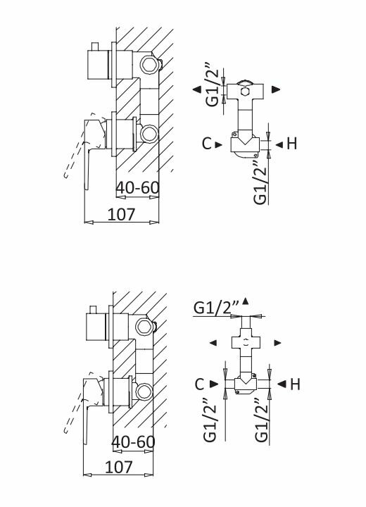 Встраиваемый однорычажный смеситель для душа с поворотным переключателем на 3 выхода, исполнение хром Cezares NAUTIC NAUTIC-VDIM3-M-01