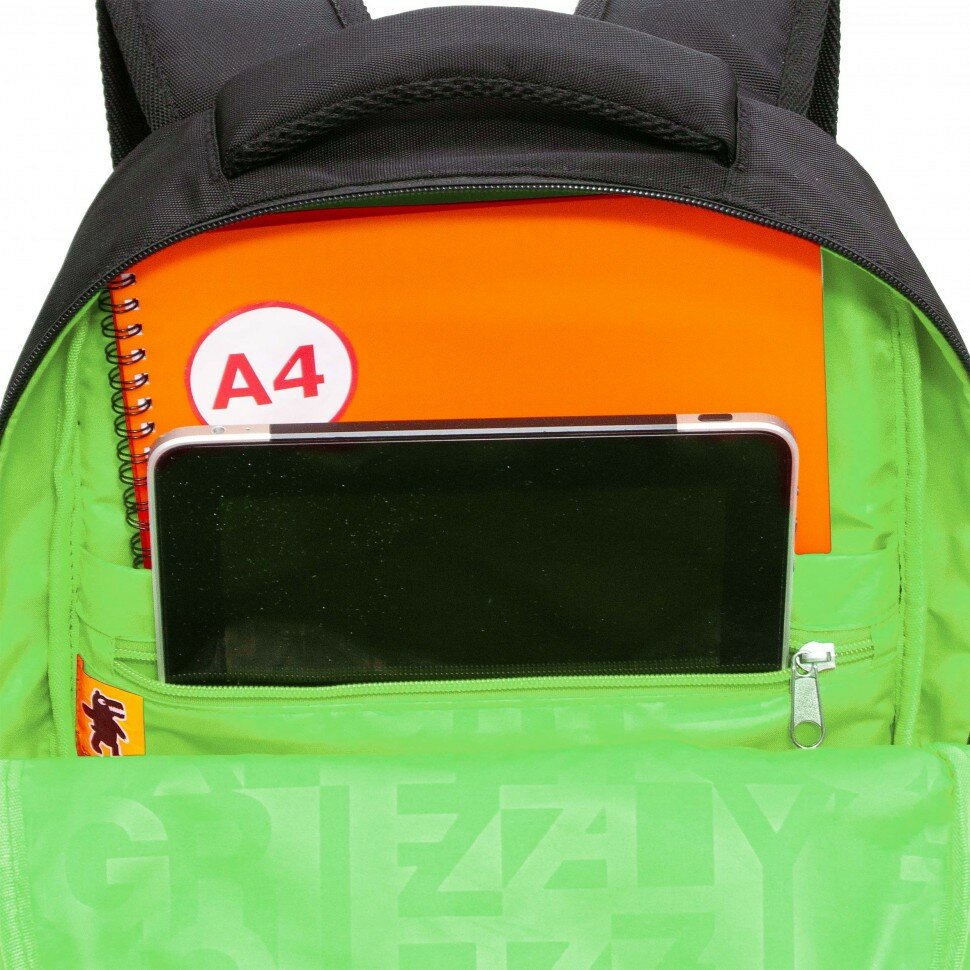 СохранитьРюкзак школьный Grizzly RB-354-4/1 черный - салатовый интересное: