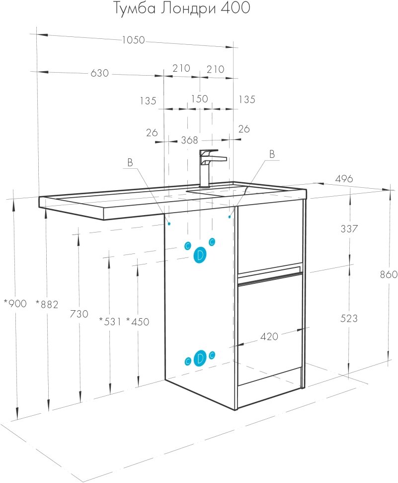 СохранитьТумба без раковины Акватон Лондри 40 1A236001LH010 интересное: