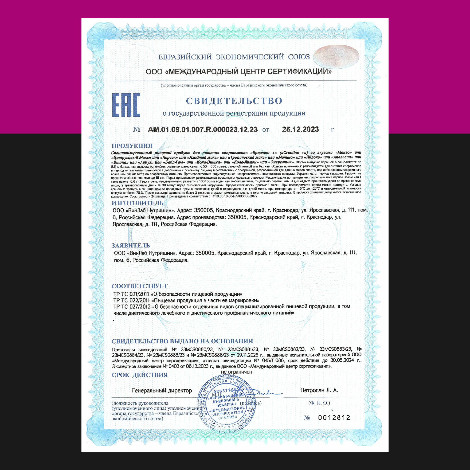 | Дополнительная информация | рекомендации по применению: Рекомендуется принимать по одной мерной ложке (6.6 г), растворив порошок в 250 мл воды или сока; состав: креатин моногидрат, мальтодекстрин, аскорбиновая кислота, подсластитель - сукралоза, ароматизатор |