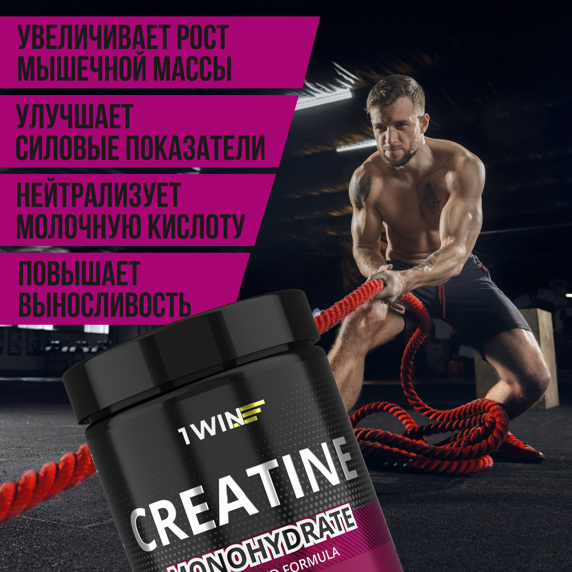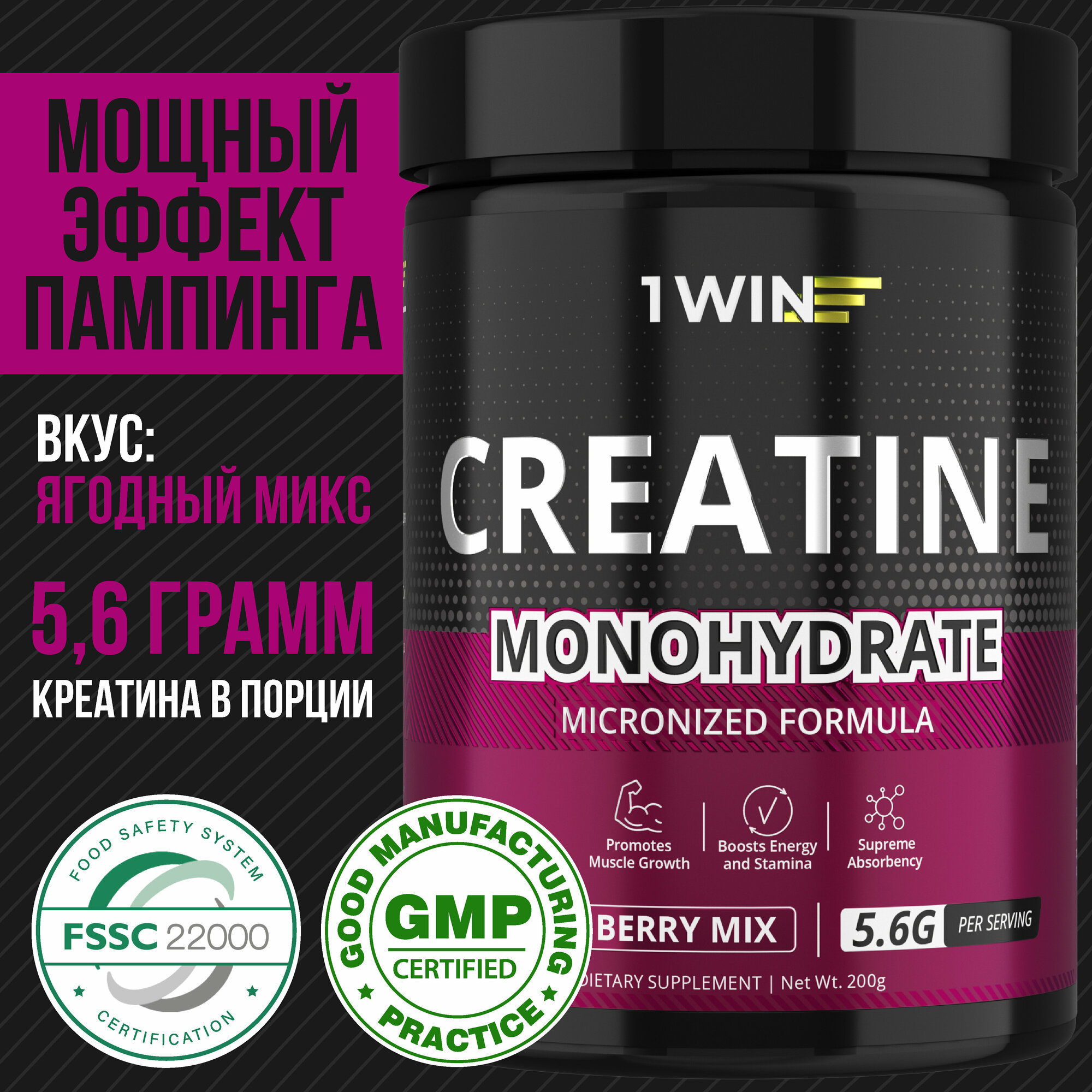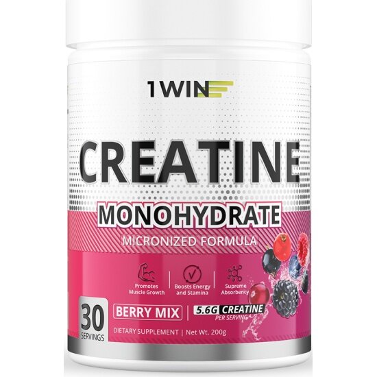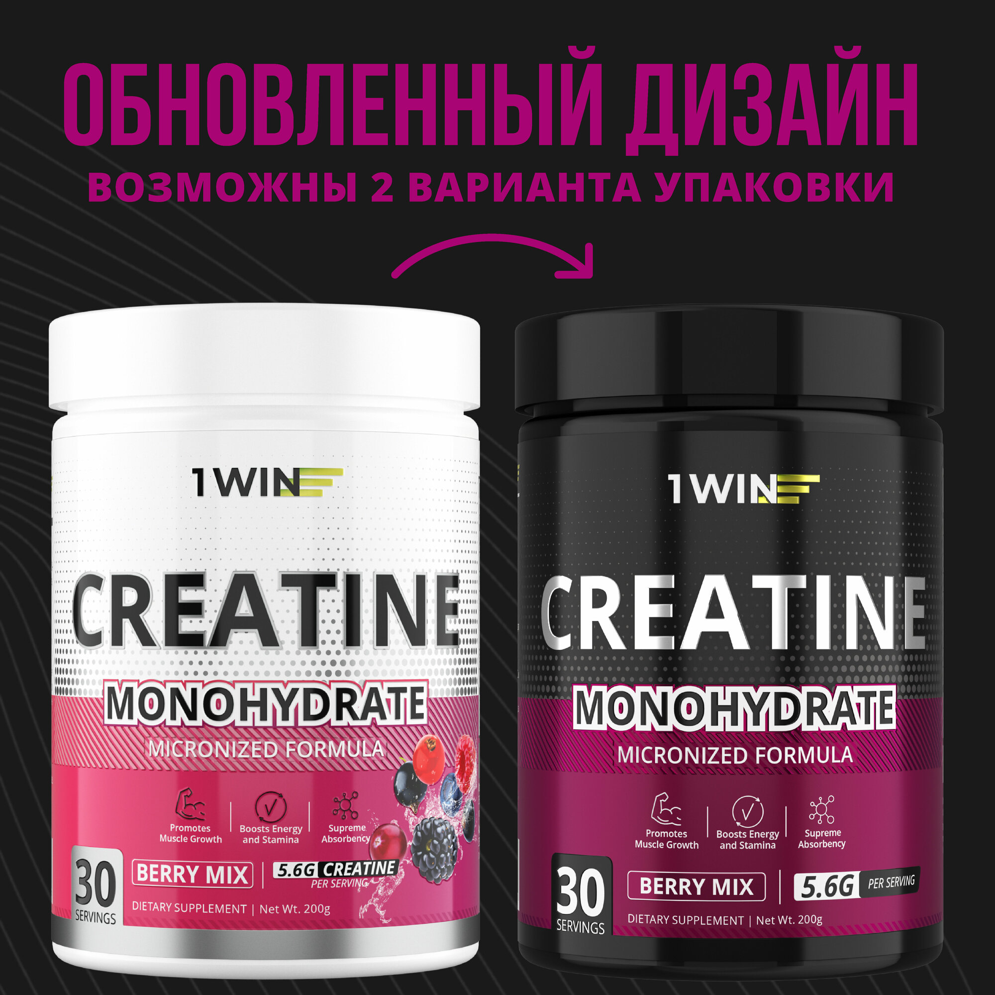 Креатин моногидрат порошок 1WIN, Creatine Monohydrate, Вкус Ягодный микс, 60 порций, спортивное питание для набора массы тела