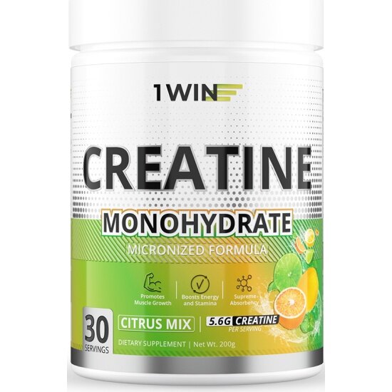 Креатин 1WIN моногидрат, Цитрусовый микс, Банка 200 гр. 30 порций. пд