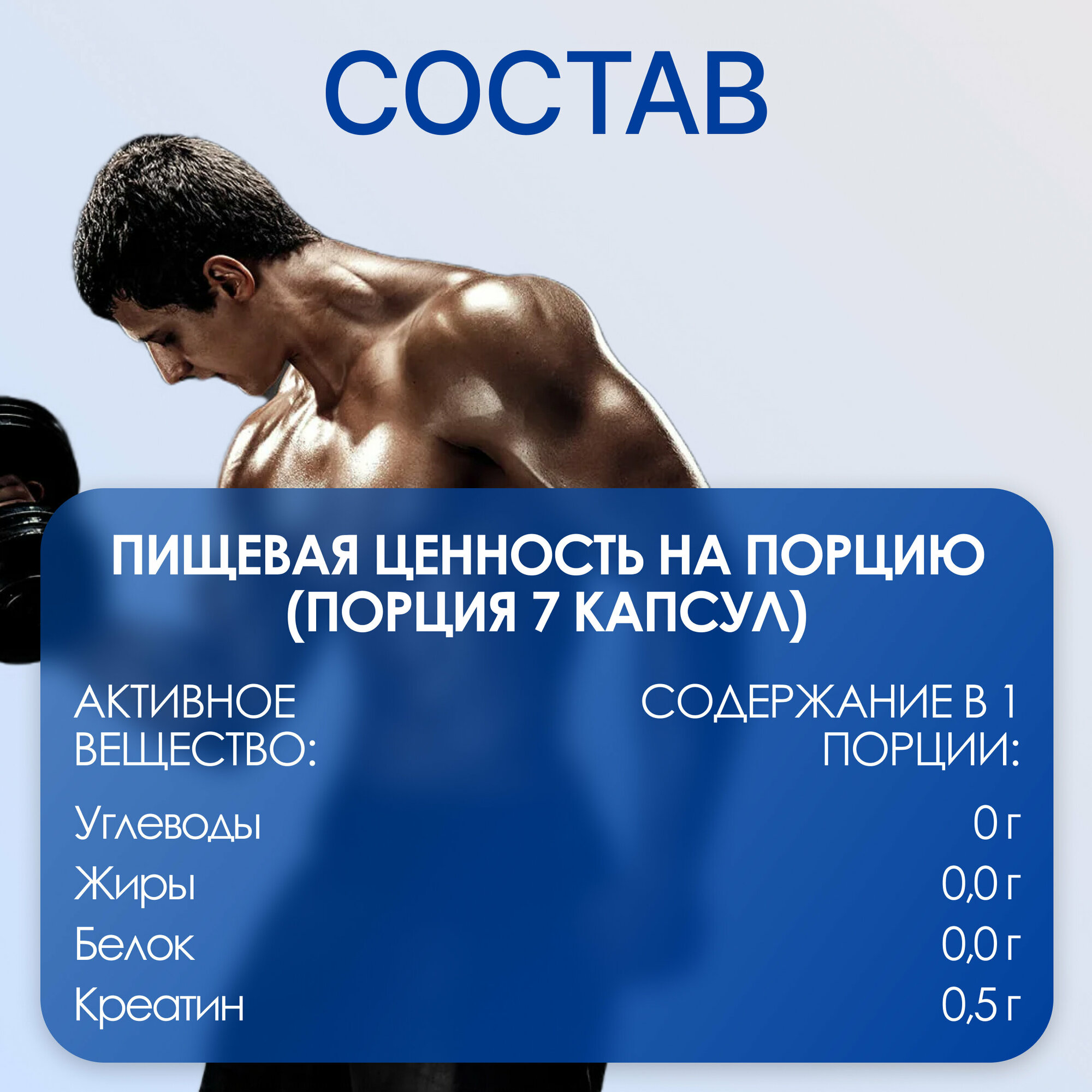 | Дополнительная информация | размер порции: 7 шт.; рекомендации по применению: первый вариант состоит из двух этапов: первую неделю необходимо принимать по 5 грамм креатина 4-5 раз в день, далее следует принимать по 5 грамм 1 раз в день, для поддержания концентрации; второй вариант: прием 5 грамм креатина 1 раз в день в течение, минимум, 30 дней; состав: креатин моногидрат, желатин |