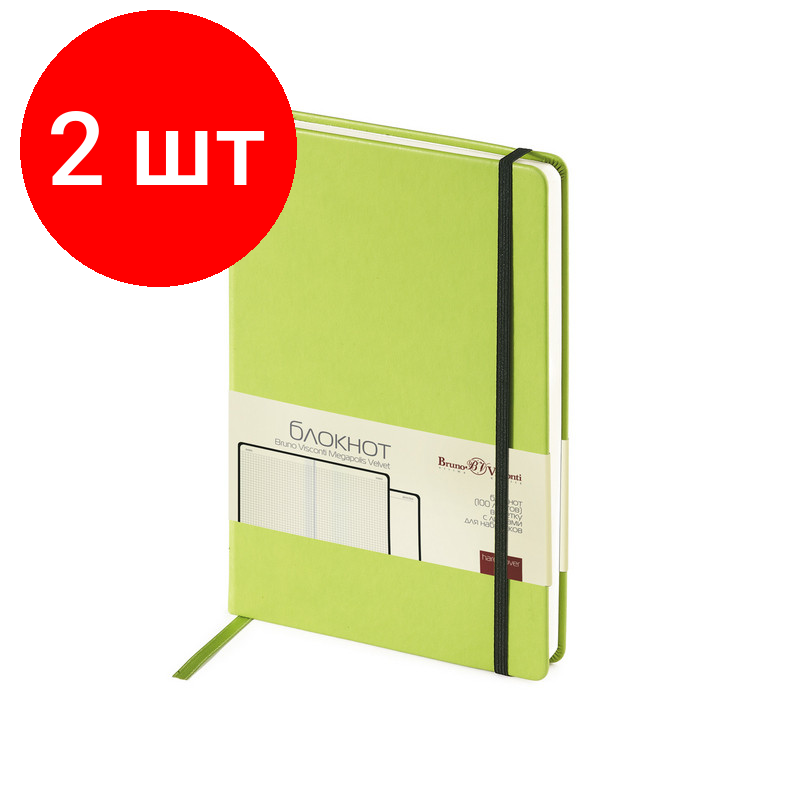 Купить Комплект 2 штук, Блокнот А5 100 Л MEGAPOLIS VELVET на резинке (салатовый) 3-525/09