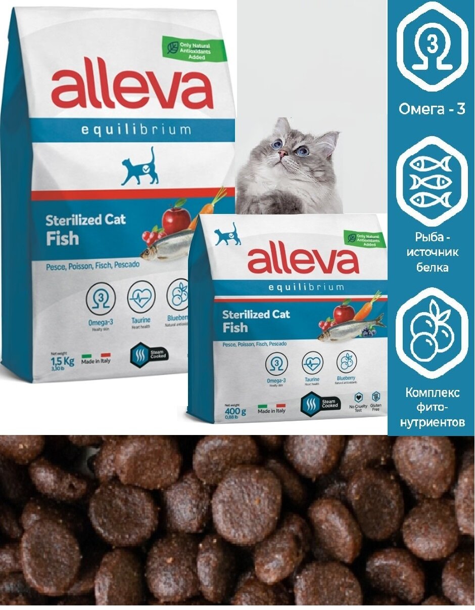 Сухой корм для кошек ALLEVA EQUILIBRIUM CHICKEN STERILIZED CAT Аллева корм Эквилибриум для кастрированных котов и стерилизованных кошек с рыбой 10кг