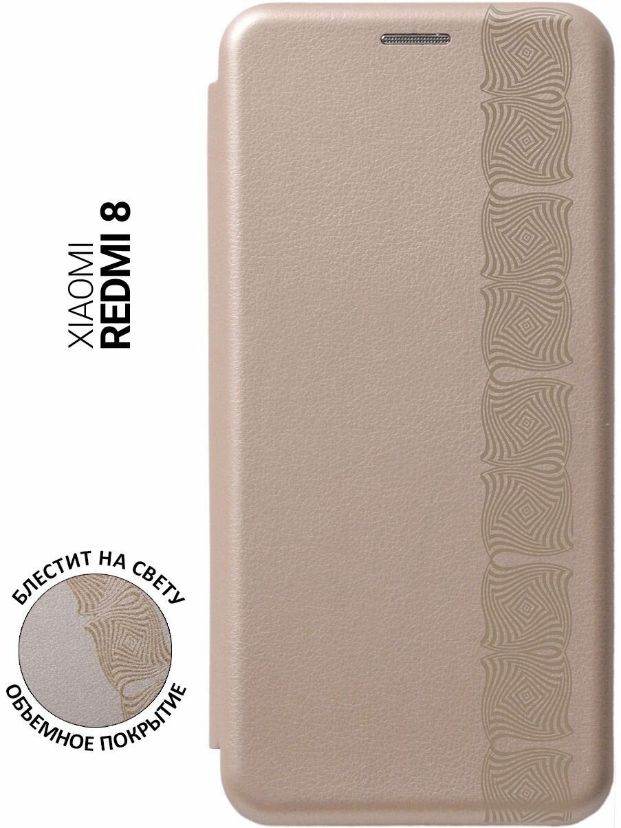 Чехол-книжка на Xiaomi Redmi 8 / Сяоми Редми 8 с 3D принтом "Charming Line" золотистый