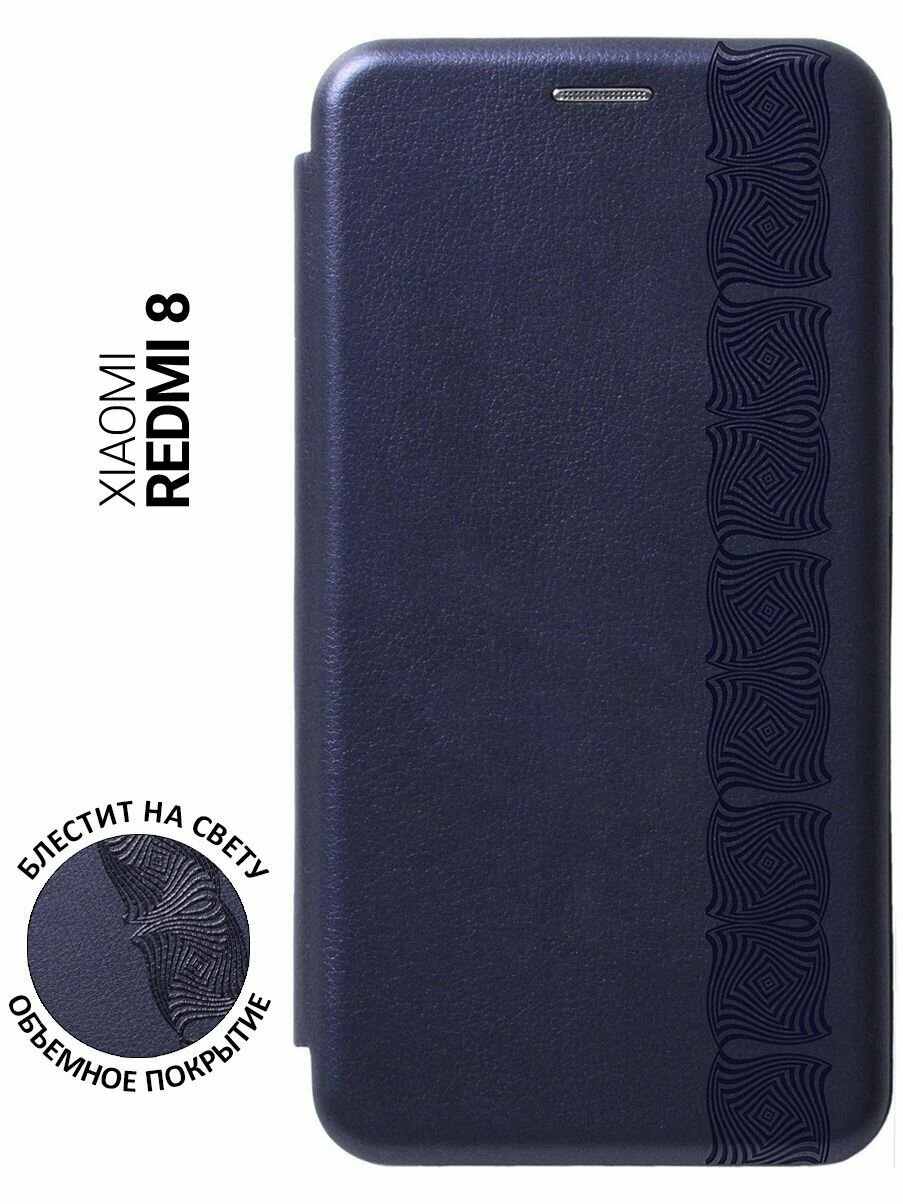 Чехол-книжка на Xiaomi Redmi 8 / Сяоми Редми 8 с 3D принтом "Charming Line" синий