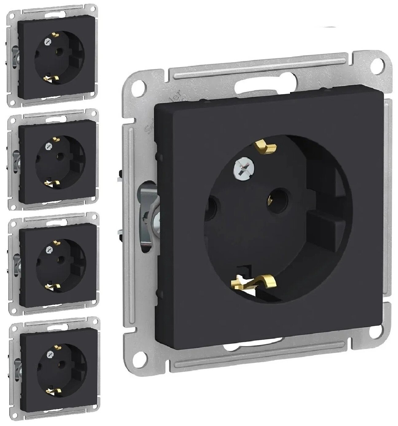 Розетка Schneider Electric AtlasDesign ATN001043 черная с заземлением 5шт механизм розетки Шнайдер Электрик Атлас Дизайн карбон антрацит
