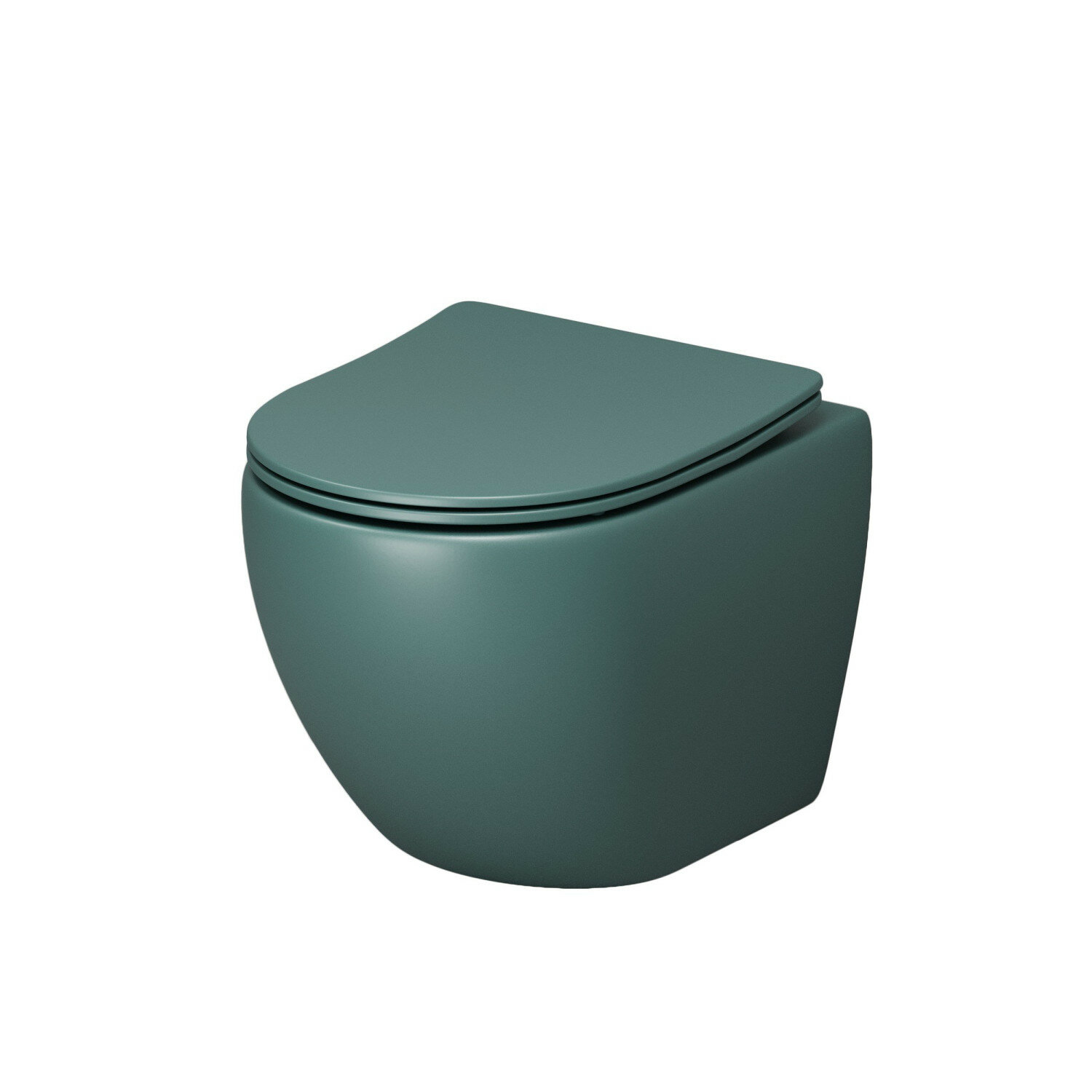 Купить Унитаз Grossman GR-4455OLMS зеленый матовый подвесной с тонкой крышкой