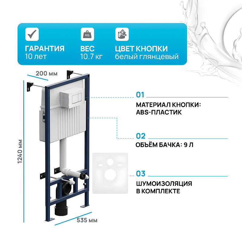 Инсталляция AM.PM ProC S I012707.0201 комплект 4 в 1: инсталляция для унитаза, механическая кнопка ProC S глянцевый белый, шумоизоляция, крепления