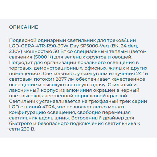 Светильник LGD-GERA-4TR-R90-30W Day SP5000-Veg (BK, 24 deg, 230V) (Arlight, IP20 Металл, 3 года)