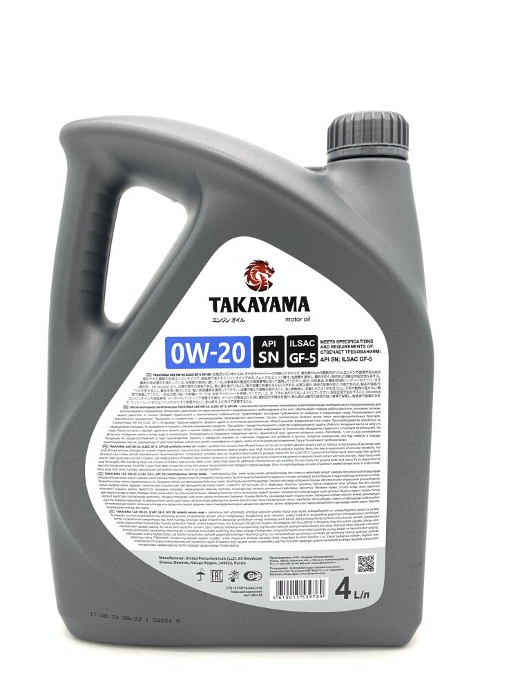 Купить Моторное масло TAKAYAMA ILSAC GF-5 0W-20 4л (605554) пластик