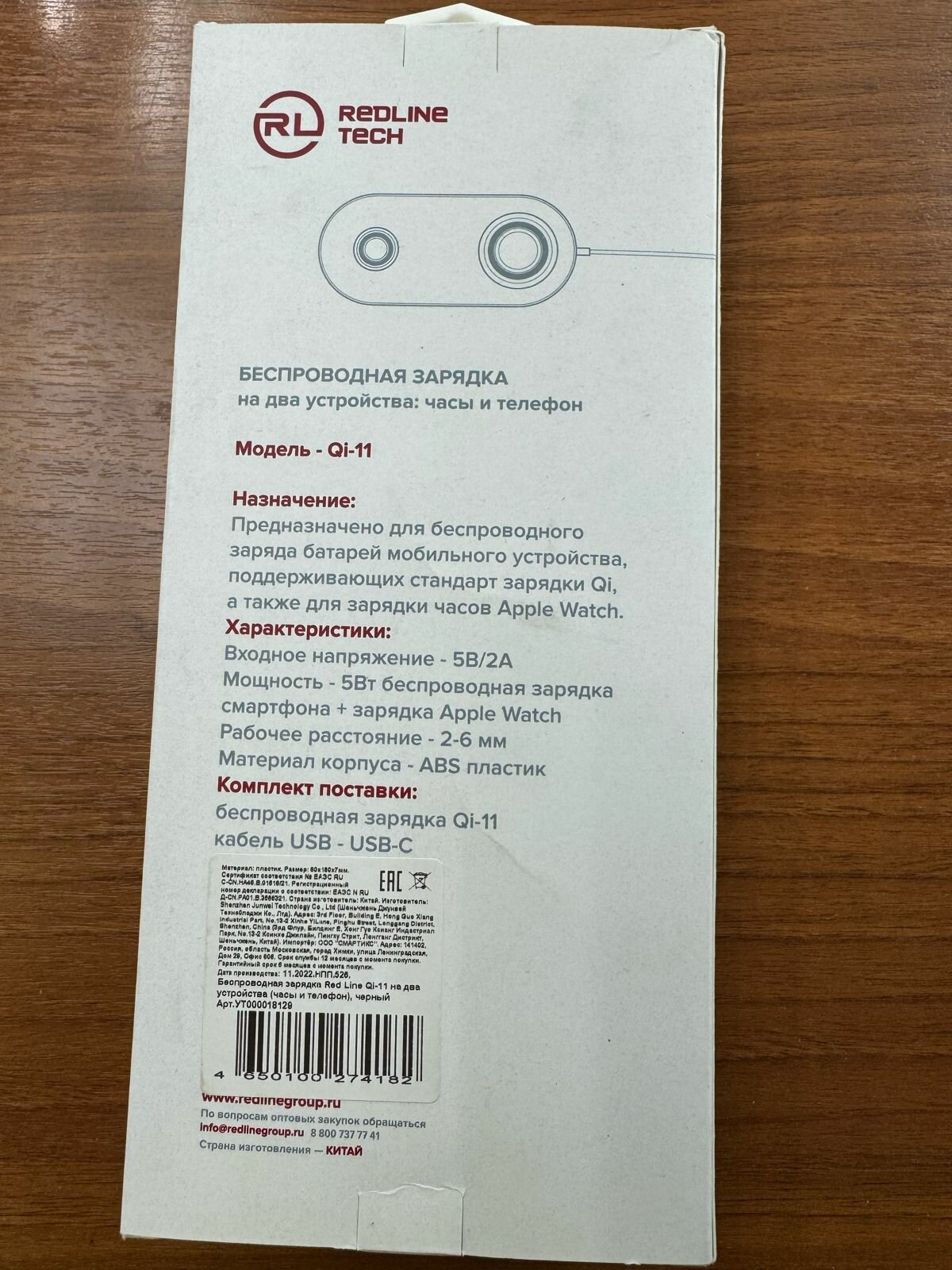 Зарядное устройство беспроводное Red Line Qi-11 на два устройства часы + телефон черный
