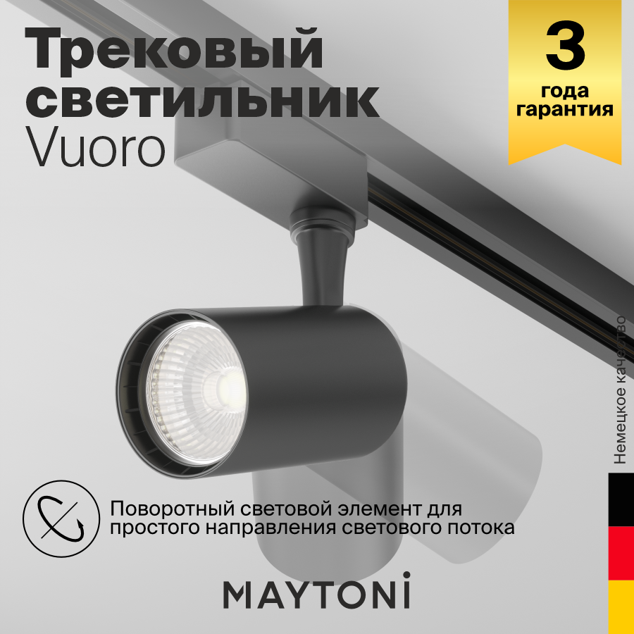 Трековый светильник-спот MAYTONI Vuoro TR003-1-6W3K-B, кол-во ламп: 1 шт., цвет арматуры: черный, цвет плафона: черный