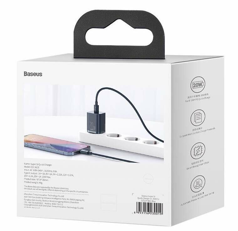 СохранитьСетевое зар. устр. Baseus Super Si Quick Charger 1C 20W EU (CCSUP-B03) синее интересное: