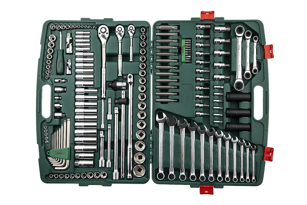 | Инструменты в комплекте | рукоять для бит / вороток для головок / трещотка / ключи гаечные / ключи имбусовые (шестигранные) |