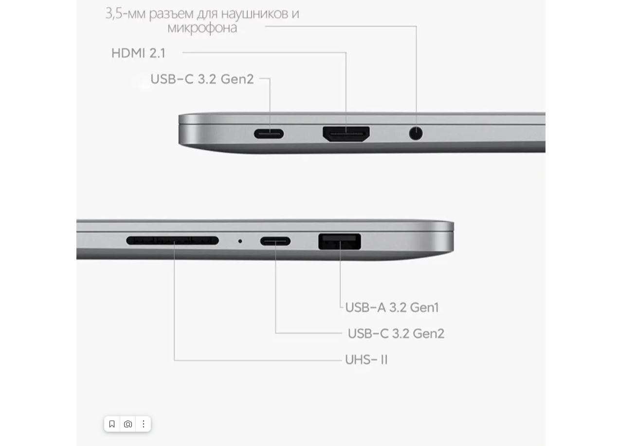 | Плюсы: | Визуально похож на MacBook, при этом работает на Windows 11. Вес умеренный, с учётом большого экрана можно сказать, что он даже лёгкий. |