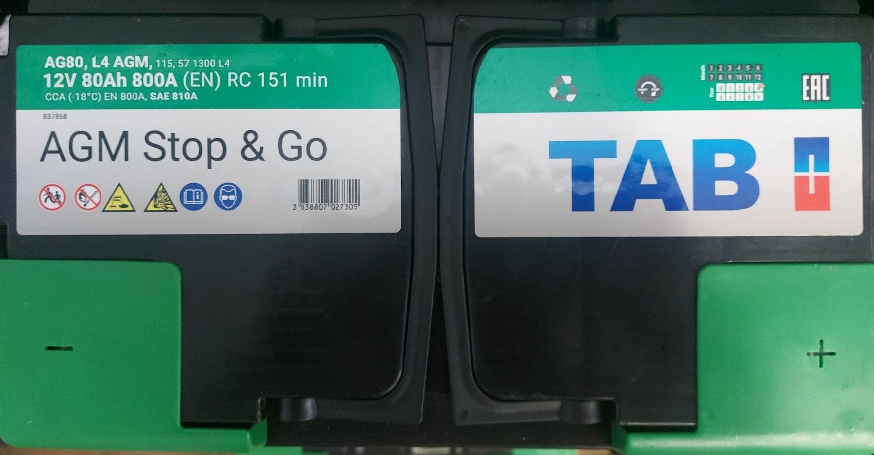 Аккумулятор автомобильный TAB AGM Stop&Go AG80 (213080), 80 Ач, пуск. ток 800 А, обратная полярность, 315x175x190, SMF