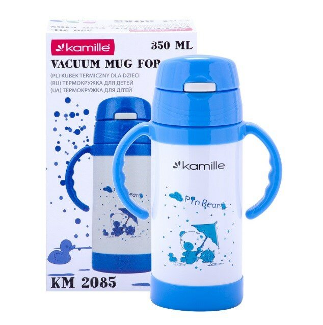 Термос для детей 350 мл. с трубочкой и ручками Kamille KM-2085 (2085 / синий)