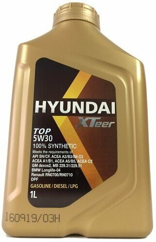 HYUNDAI XTeer TOP 5W30, 1л, MB-Approval 229.31/229.51/229.52VW 505 00/505 01,BMW Longlife – 04, GM dexos 2, 100%SYNTHETIC, Моторное масло синтетическое