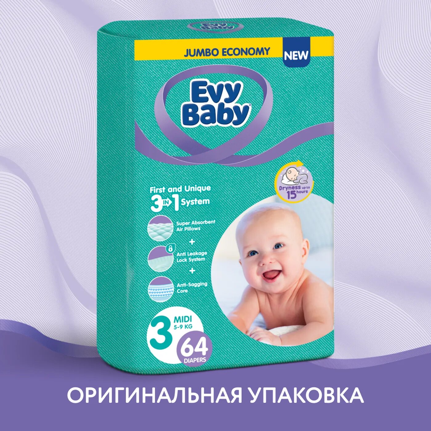 Подгузники Evy Baby Midi 5-9кг 3М 64шт интересное: