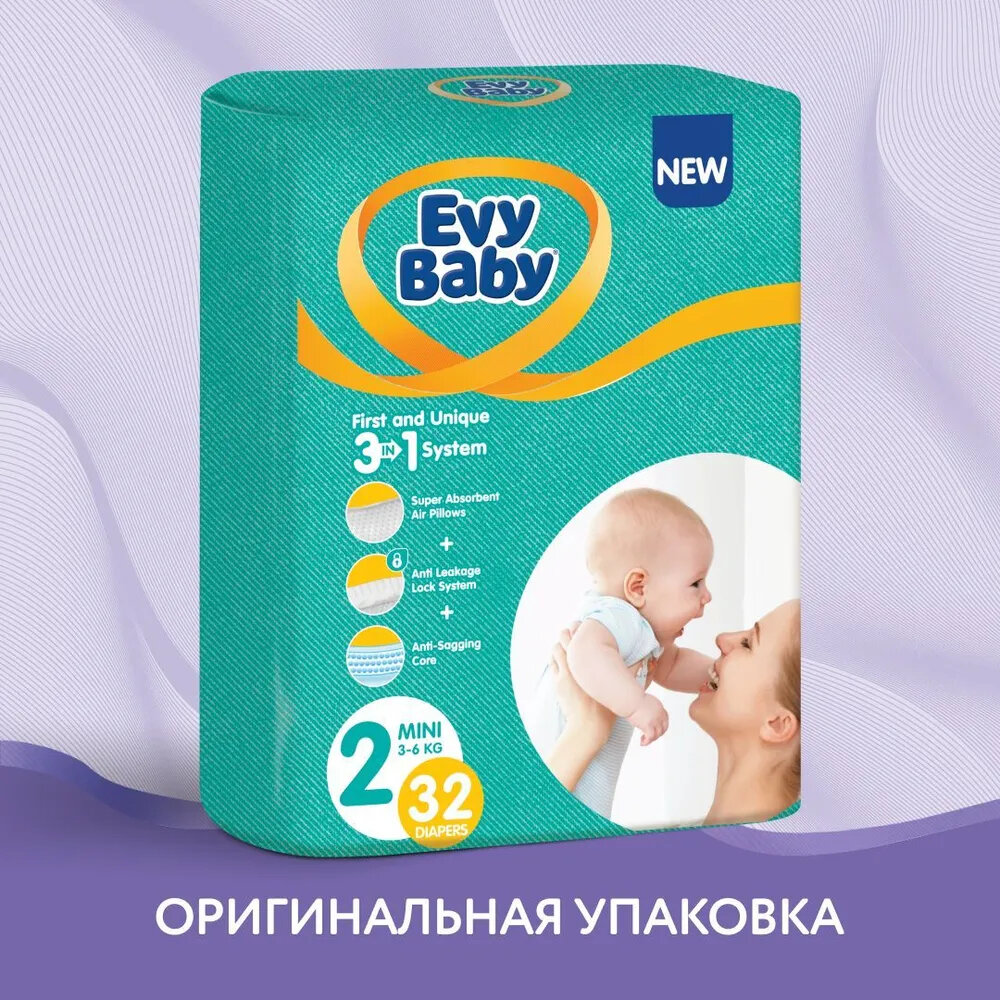 Подгузники детские Evy Baby Mini 3-6 кг, размер 2, 32 шт