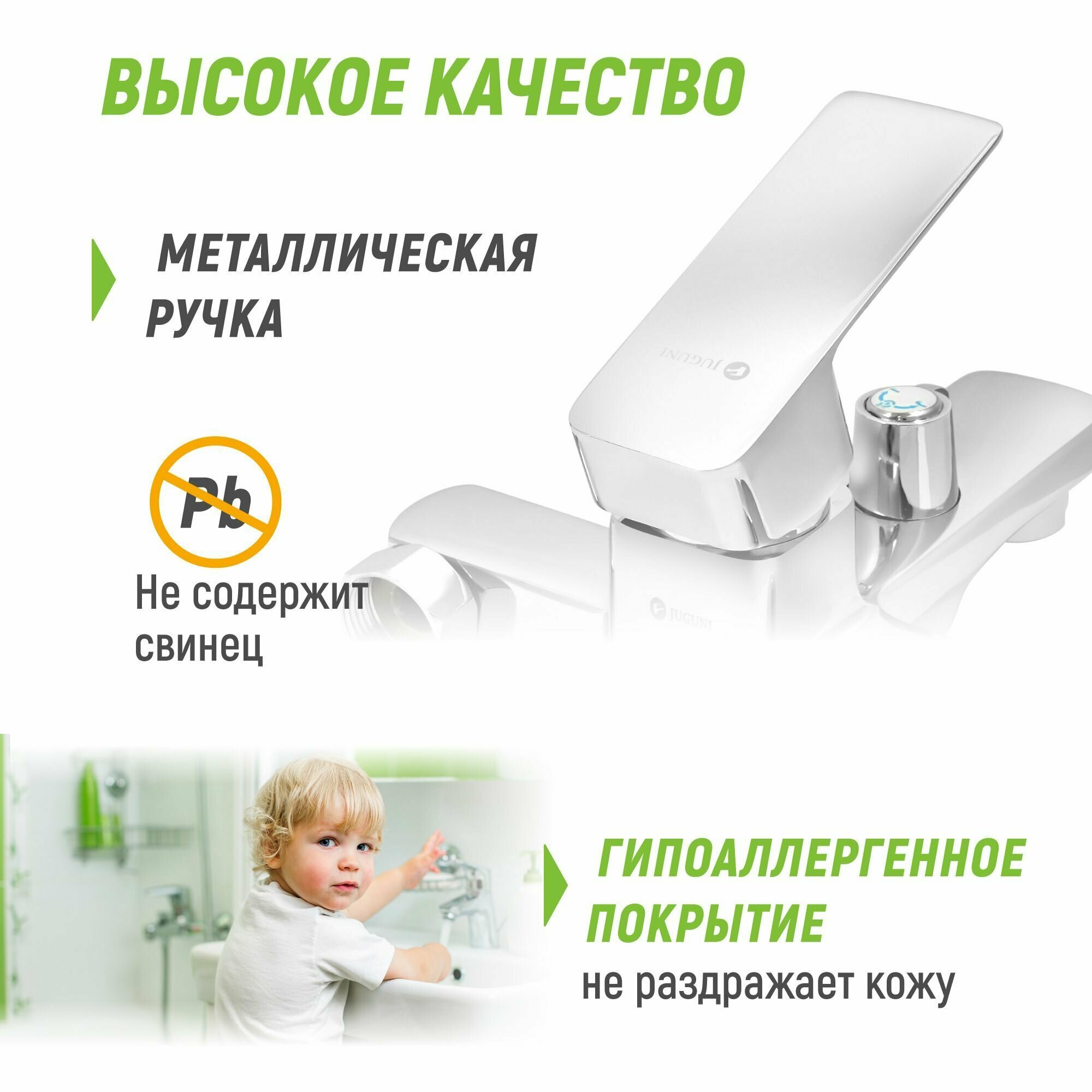 Смеситель для ванны с коротким изливом, шланг 150 см, лейка, Juguni 0402.134 интересное: