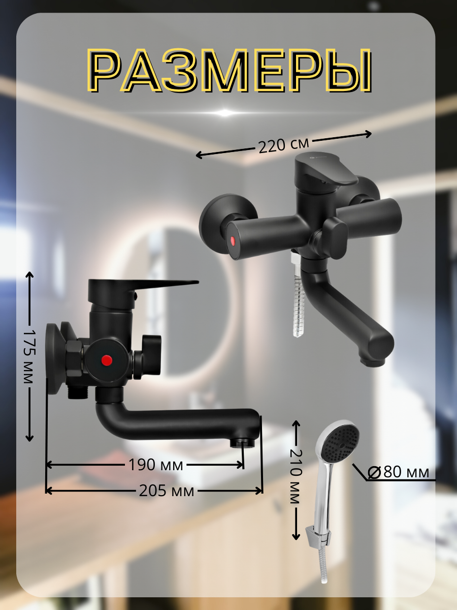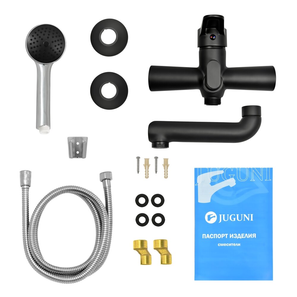 Смеситель для ванны с коротким изливом черный, шланг 150 см, лейка, Juguni 0402.155 интересное: