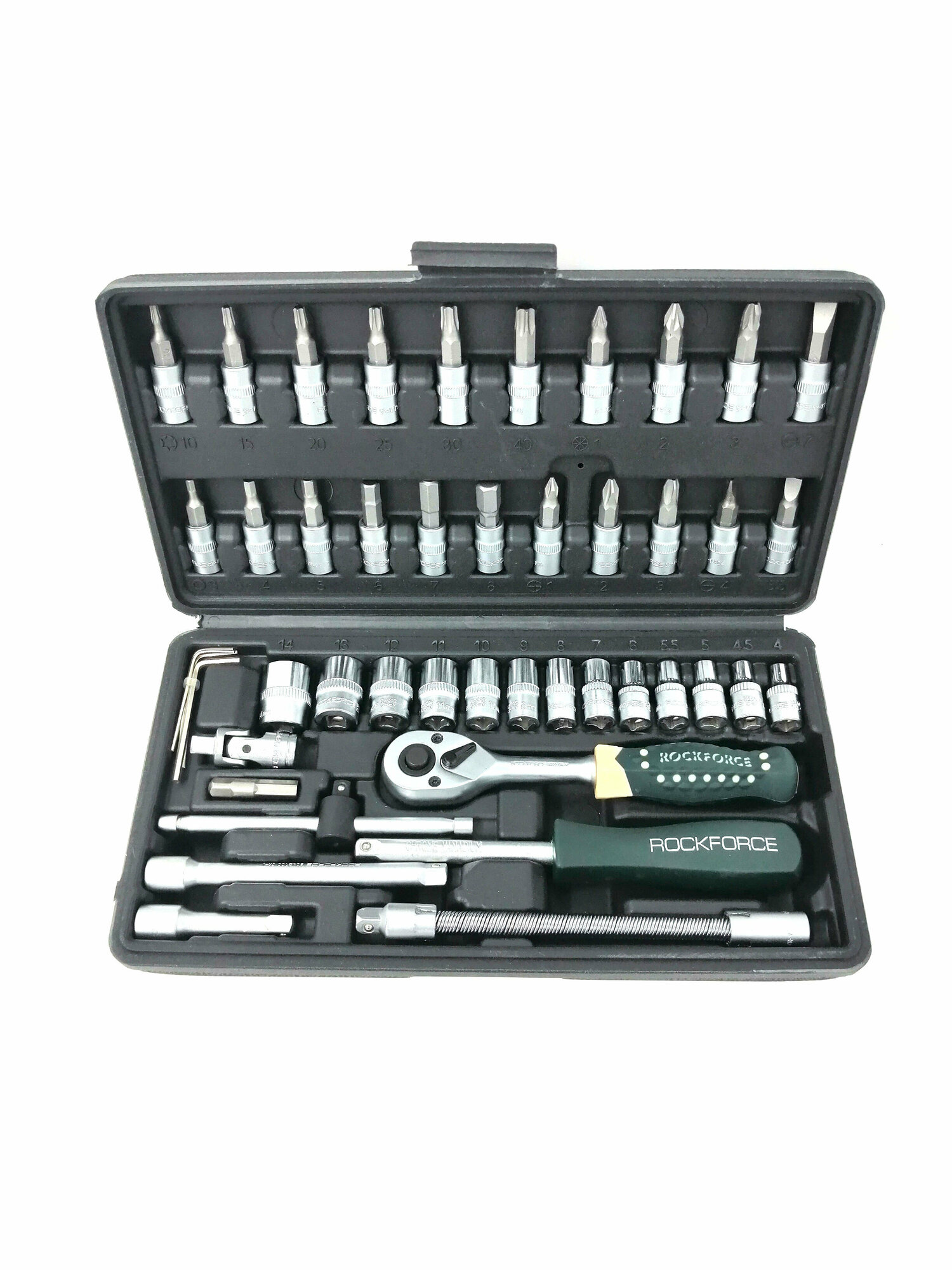 Набор головок торцевых и бит-головок 1/4" 46 предметов ROCKFORCE