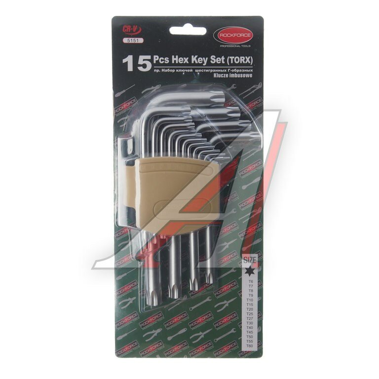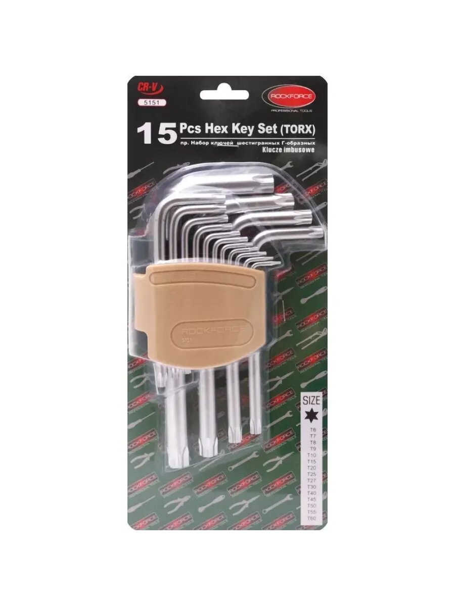 Набор ключей RF-5151 TORX Г-образных, 15пр.(Т6- Т10,Т15,Т20,Т25,Т27,Т30,Т40,Т45,Т50,Т55,Т60)в пласт, ROCK FORCE RF5151 (1 шт.)