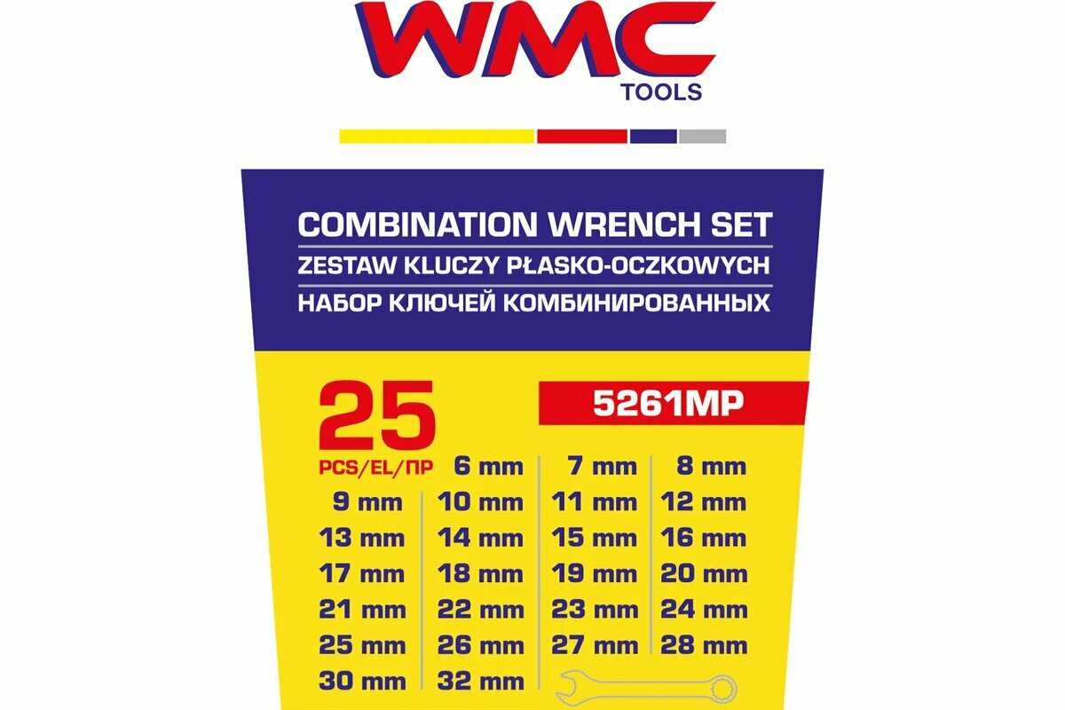 Набор Ключей Комбинированных 6-19,21,22,24,27,30,32мм 25 Предметов В Пластиковом Держателе Wmc Tools WMC TOOLS арт. WMC5261MP