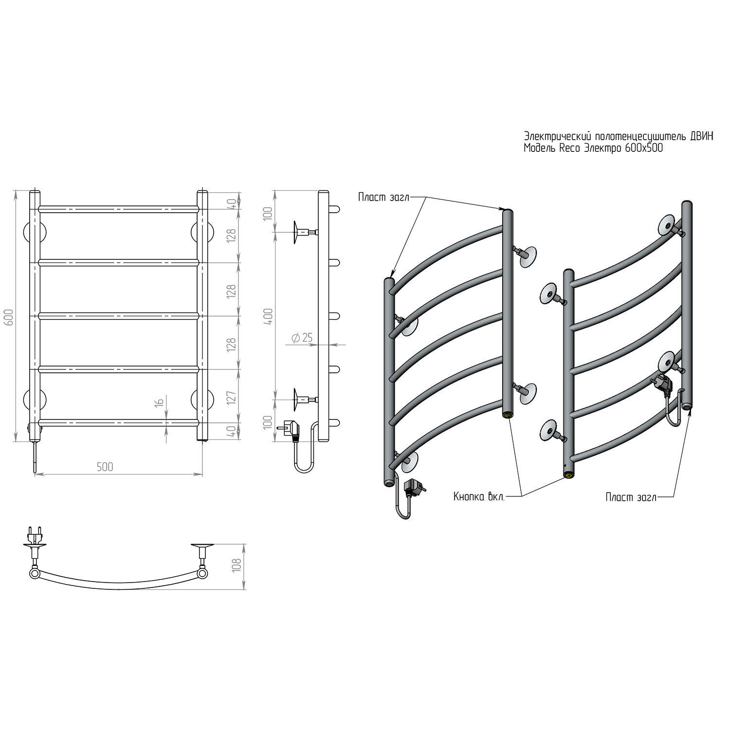 Полотенцесушитель Двин R Electro Eco 60/50 4627162894184